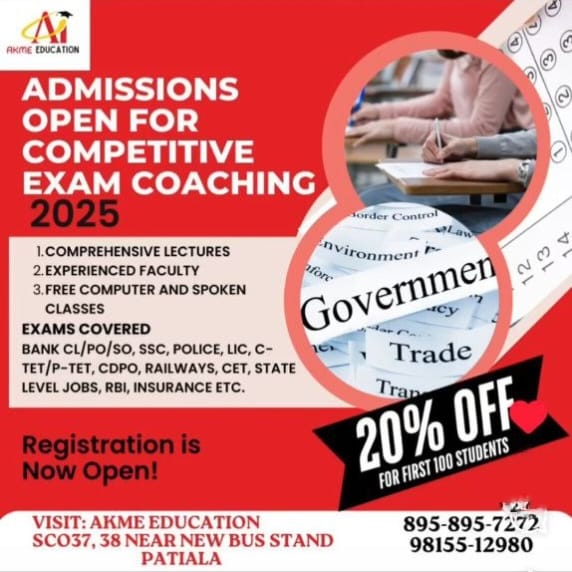 At Akme4ExamSetu, we empower students to excel in competitive exams through expert coaching and personalized guidance in Patiala.